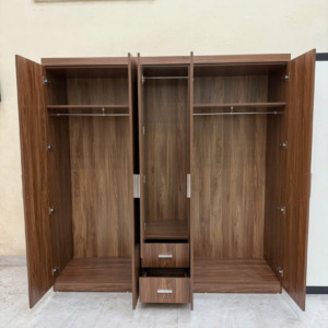 Tủ quần áo 5 cánh gỗ công nghiệp MDF màu óc chó với thiết kế hiện đại, bố cục rộng rãi phù hợp cho gia đình 2–4 người. Tủ gồm 2 khoang treo đồ lớn, 1 khoang treo dài, kết hợp 2 ngăn kéo tiện lợi, giúp sắp xếp quần áo và phụ kiện gọn gàng.