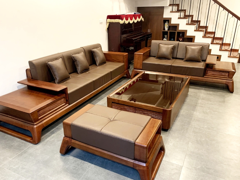 Sofa gỗ tự nhiên mang đến cảm giác ấm áp và đẳng cấp. Được làm từ các loại gỗ như sồi, xoan đào, gõ đỏ, mỗi sản phẩm có vân gỗ riêng biệt, tạo nét đẹp mộc mạc nhưng tinh tế. Ưu điểm của sofa gỗ là độ bền cao, chịu lực tốt, không lỗi thời dù sau nhiều năm sử dụng.